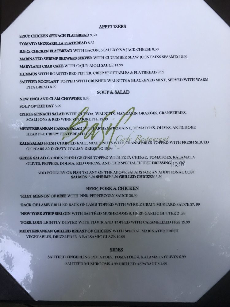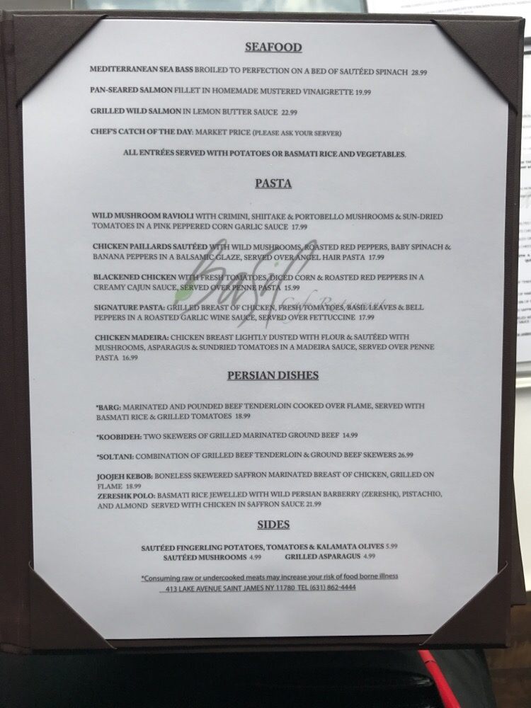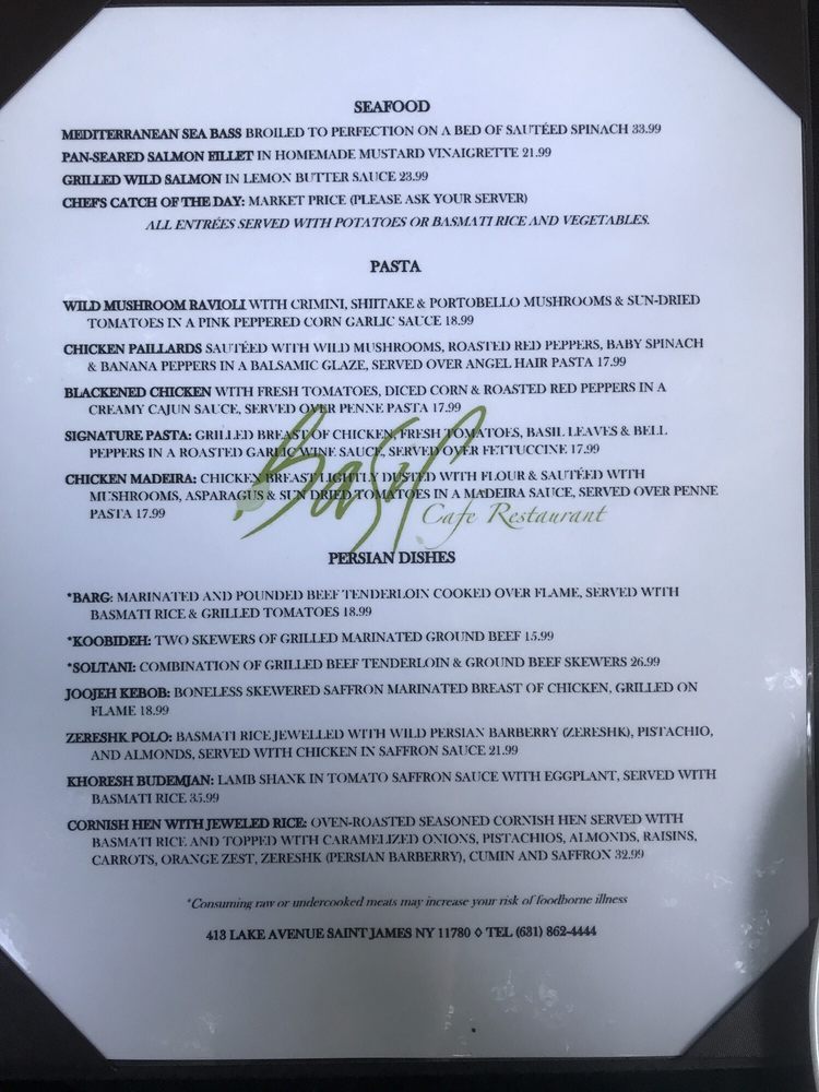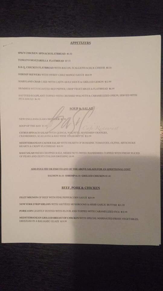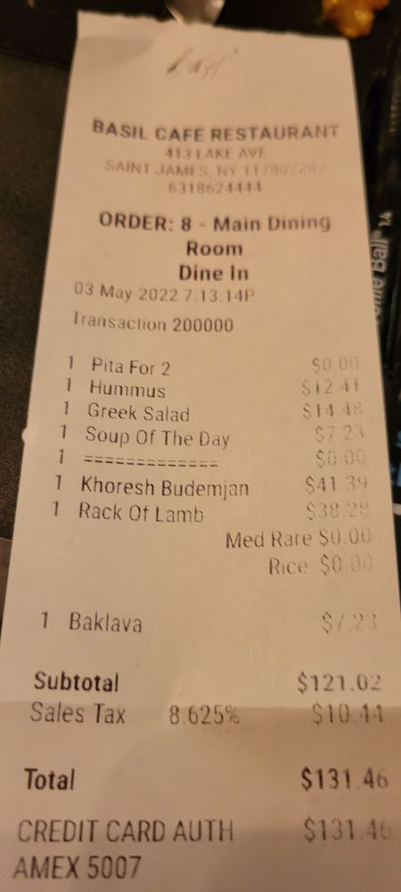 Welcome to Basil Cafe Restaurant, a hidden gem located at 413 Lake Ave in Saint James, NY. This Persian/Iranian, seafood, and Mediterranean fusion restaurant offers a cozy ambiance with excellent service. Customers rave about the flavorful and juicy kebabs, paired perfectly with fragrant saffron rice. The lamb shank is a must-try, fall-off-the-bone tender and succulent, with a delicious sauce. Fresh seafood dishes and a variety of kabobs are also highlights of the menu. The outdoor seating area is a favorite spot during the warmer months, adding to the charming atmosphere of this establishment. Whether you're looking for a relaxed dining experience or celebrating a special occasion, Basil Cafe Restaurant is sure to impress with its delicious food and welcoming ambiance. Make sure to bring your own wine for a small uncorking fee and enjoy a memorable meal at Basil Cafe Restaurant.